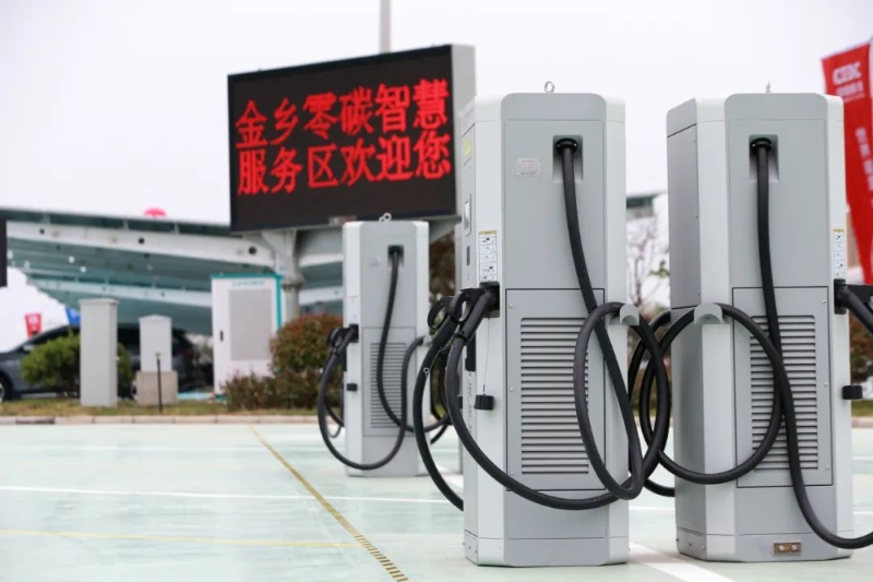 在金鄉高速服務區,縷縷陽光匯集在光伏車棚、垂直軸風機、屋面光伏板上,整個服務區實現了100%“綠電”供應:將手機放在無線充電桌上,一會兒便能“滿血復活”;無人超市里,只需拿著商品在機器上掃碼、付款即可;電動汽車在服務區只需十多分鐘,便充滿了電。